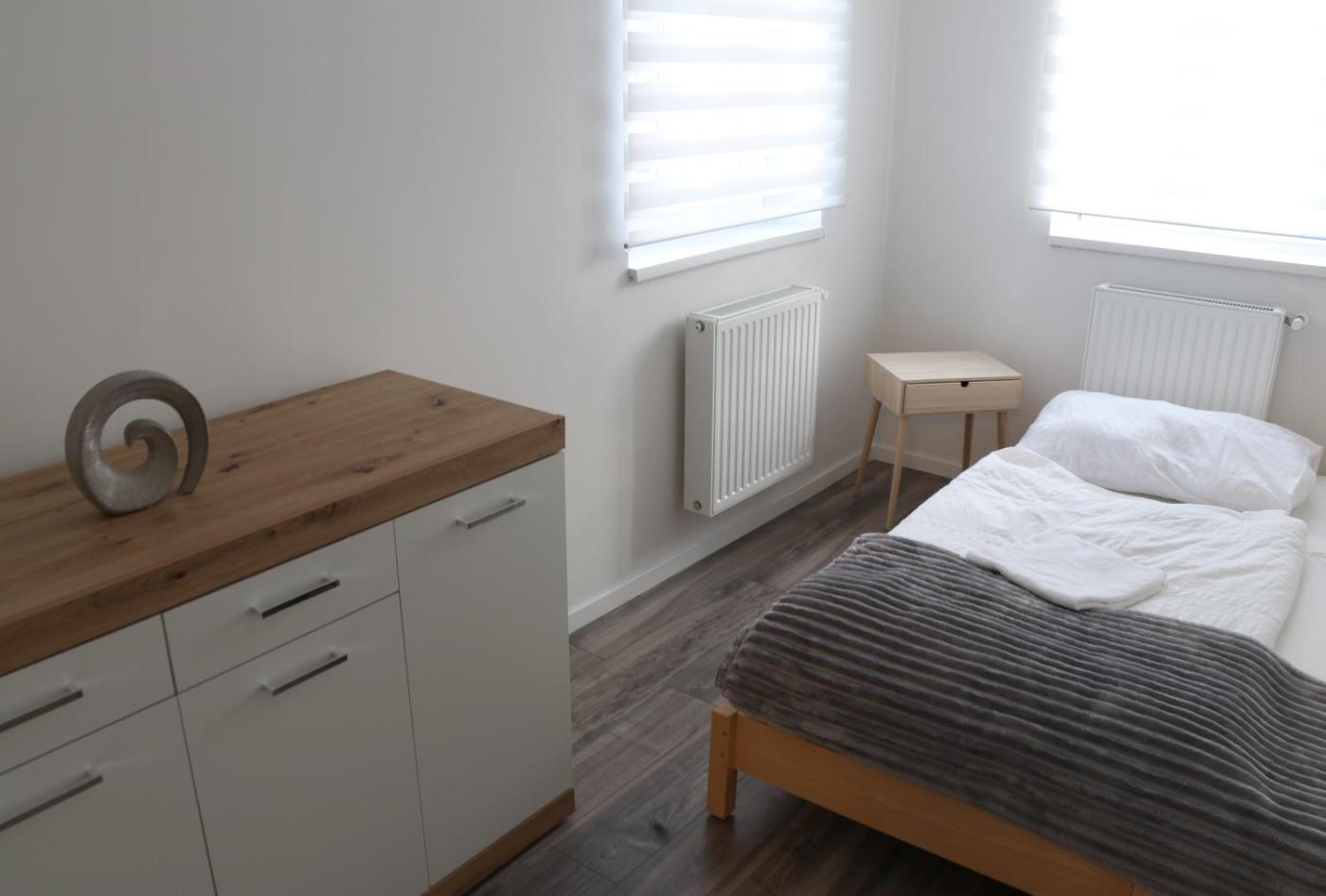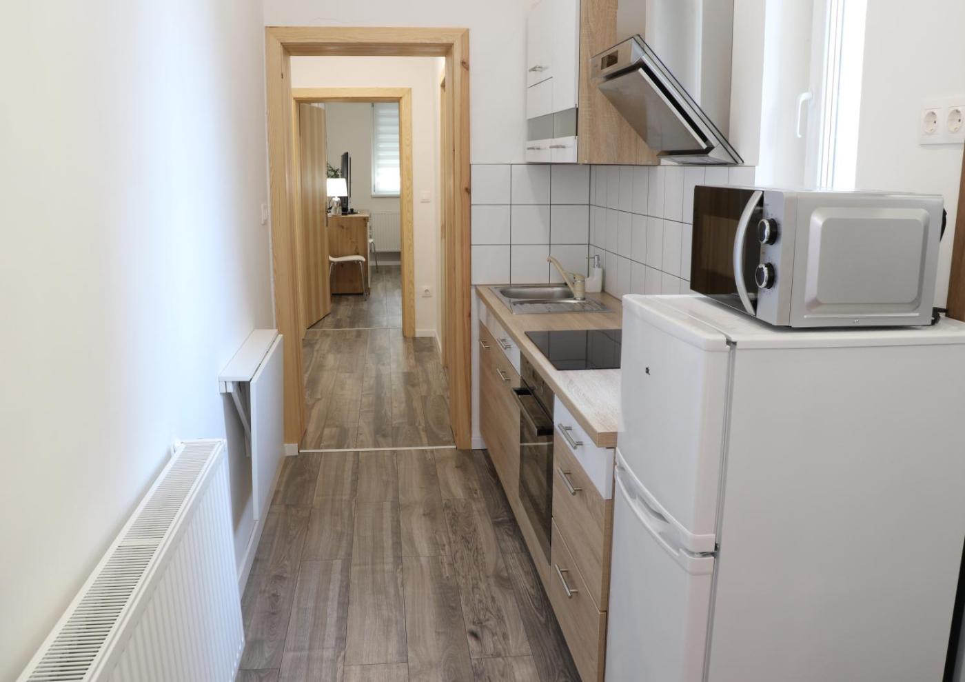 One-Bedroom Apartment. Boasting a private entrance, this air-conditioned apartment includes 1 bedroom and 1 bathroom with a shower. In the well-fitted kitchen, guests will find a stovetop, a refrigerator, kitchenware and an oven. The apartment offers a washing machine, a coffee machine, a wardrobe, a flat-screen TV with cable channels, as well as city views. The unit has 2 beds. ;
